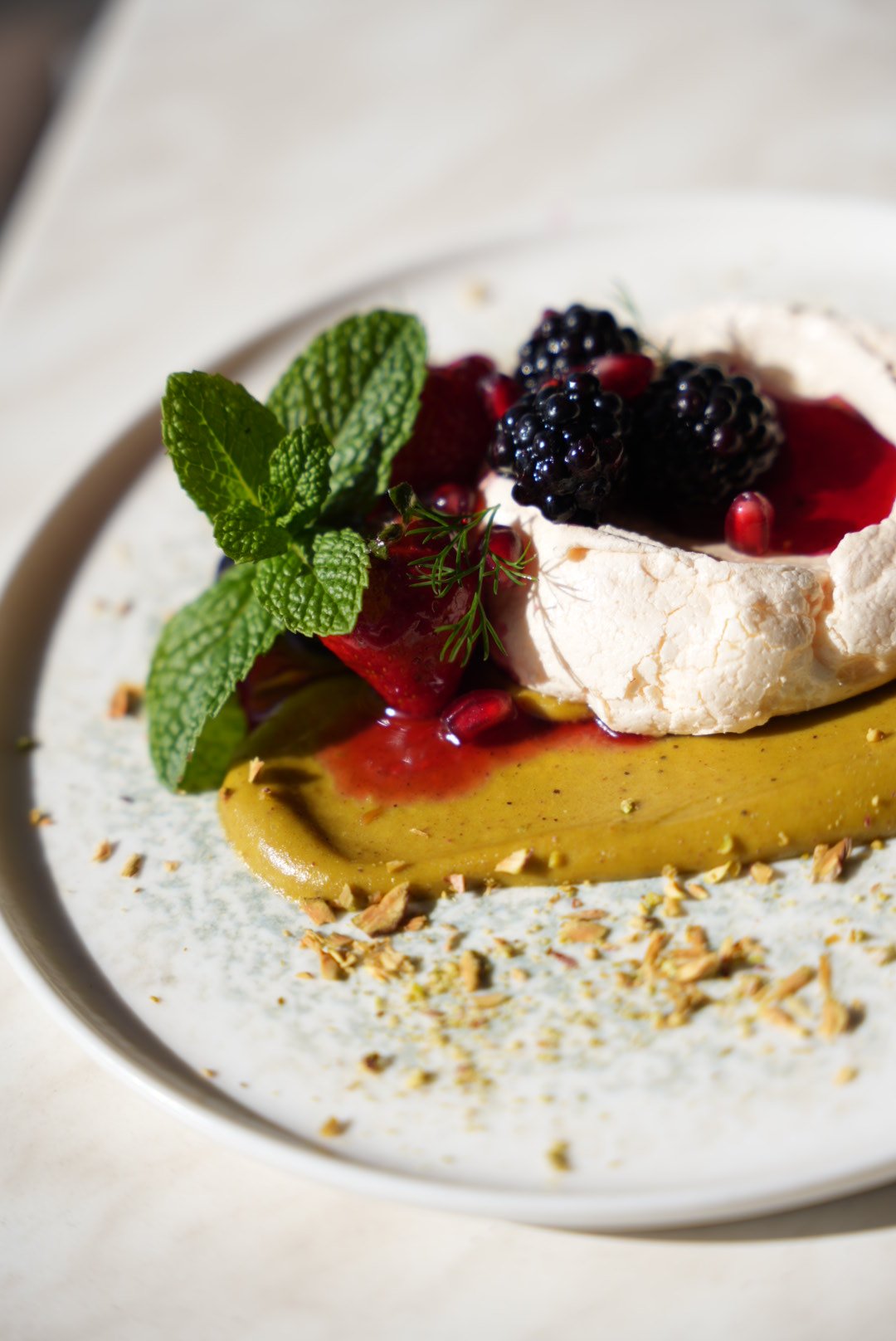Pistachio Pavlova with wild berry compote – a sweet finish made for sharing